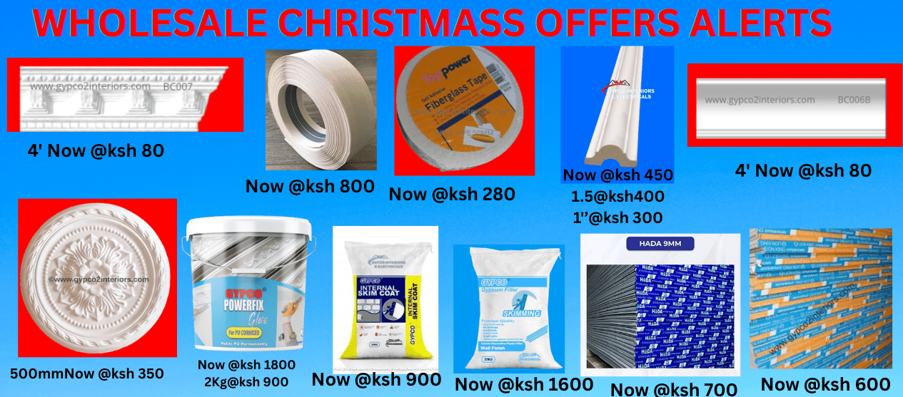 Gypco Interiors & Electricals prides itself in providing the Best construction materials in Kenya. Our products are directly imported and others manufactured locally with the best standards to ensure that your home gets the finishes that you love and admire.