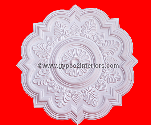Gypsum medallions are valued for their durability, lightweight nature, and ability to add a touch of elegance and sophistication to any interior space. They can be painted or left in their natural white finish, depending on the desired look. Easy to install, these medallions are a popular choice in both residential and commercial settings, providing a timeless decorative element that enhances the overall ambiance of a room.